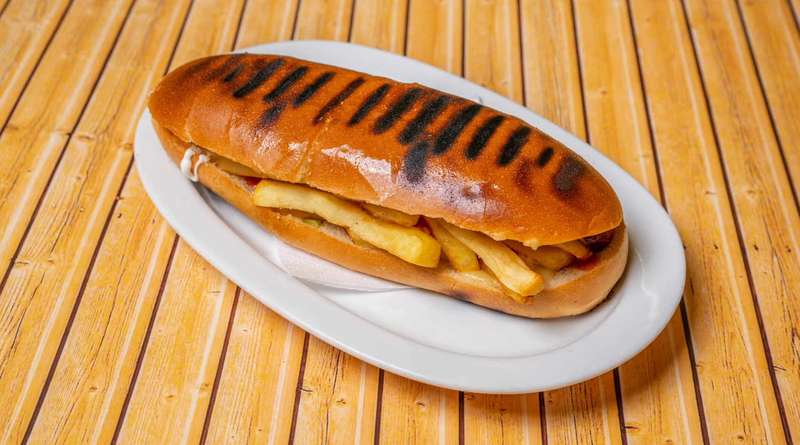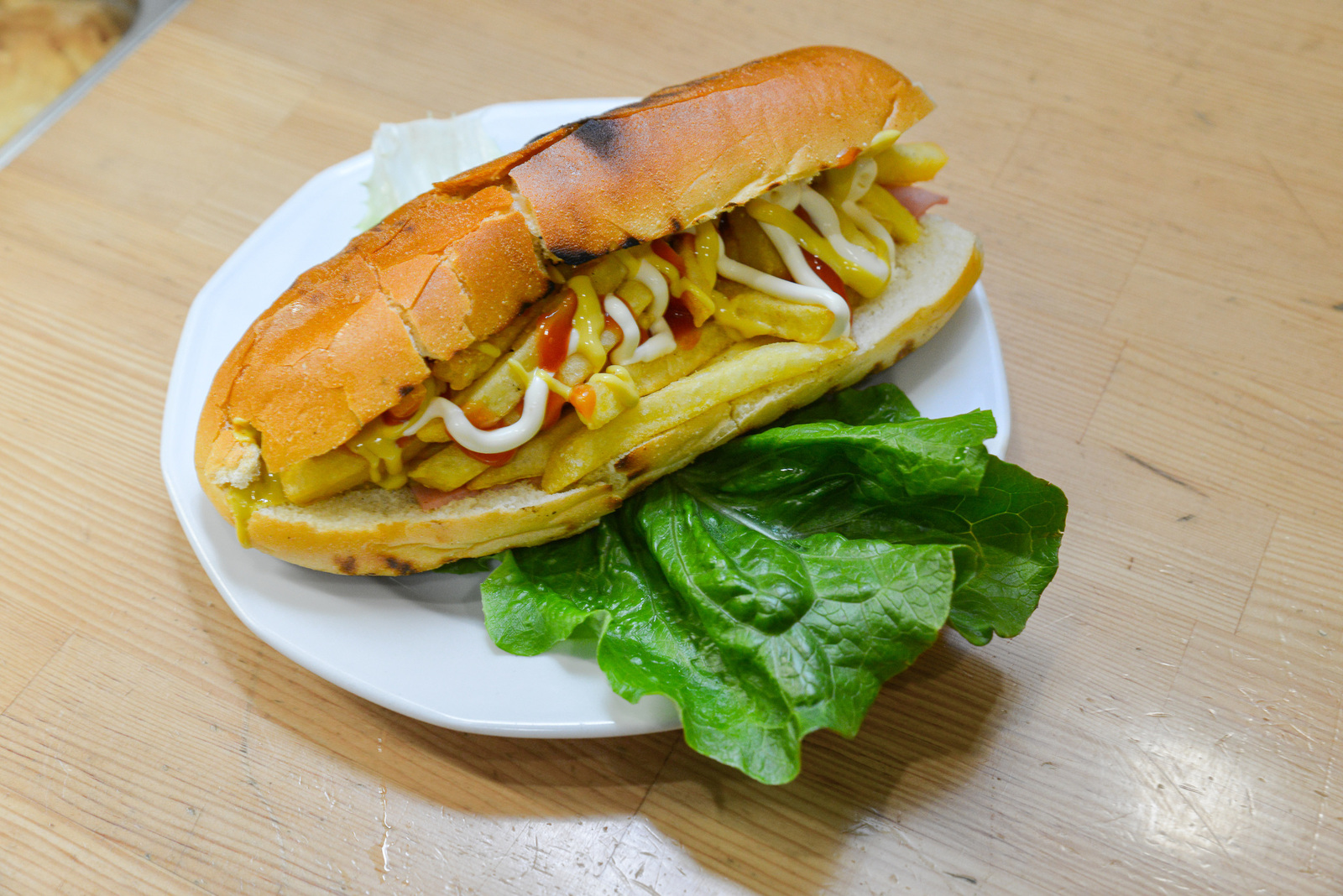2 σουβλάκια, τυρί, πατάτες, ζαμπόν ή γαλοπούλα, μαγιονέζα, κέτσαπ, μουστάρδα